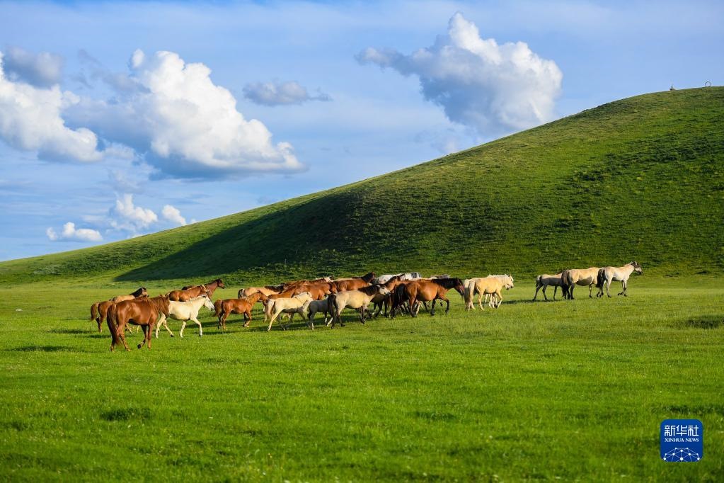 夏日,內蒙古錫林郭勒盟西烏珠穆沁旗的草原綠草如茵,風光旖旎。新華社記者任軍川攝