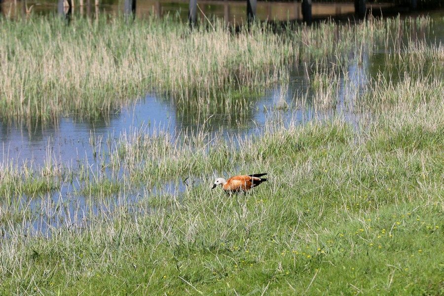 游客在石人灣濕地拍照打卡