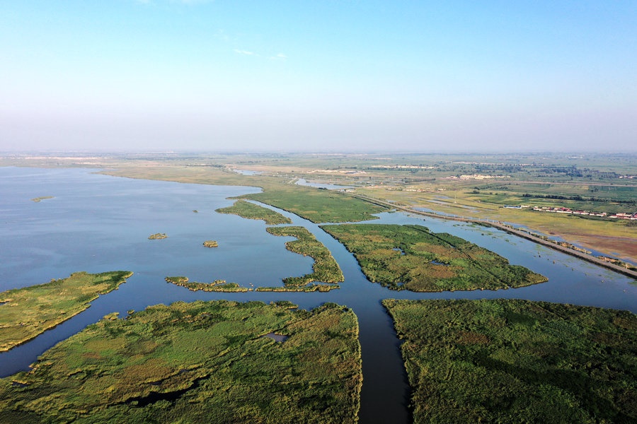 夏日的哈素海濕地,湖水清波蕩漾,水鳥嬉戲成群,山湖相映,一派生機(jī)。