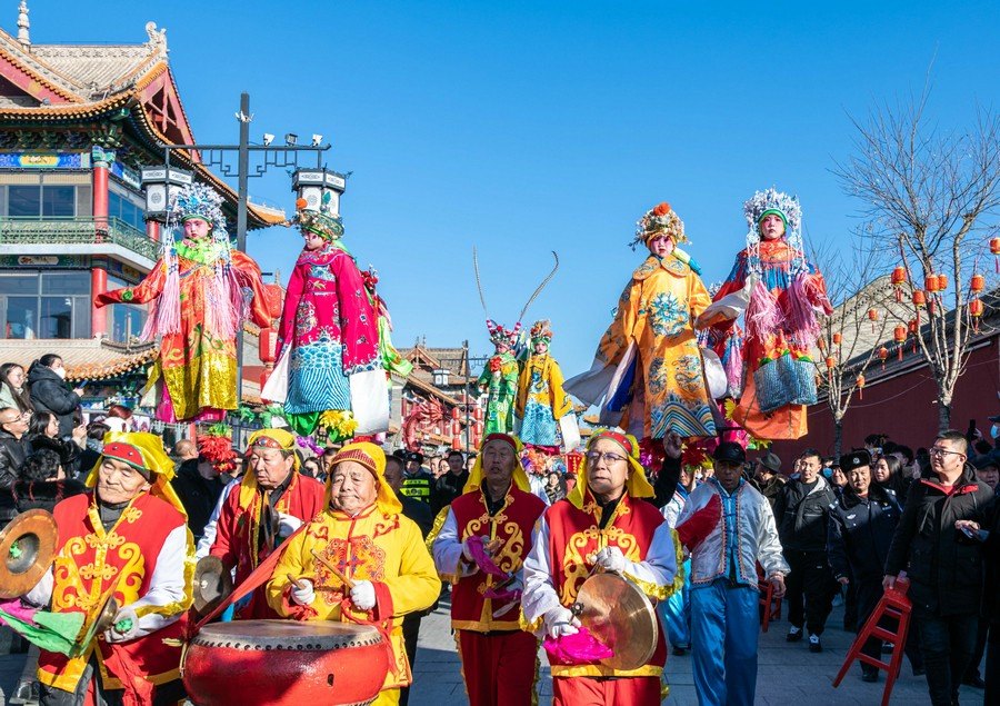 2024年2月15日,民間藝人在呼和浩特新春文化廟會現(xiàn)場進行社火表演。丁根厚 攝