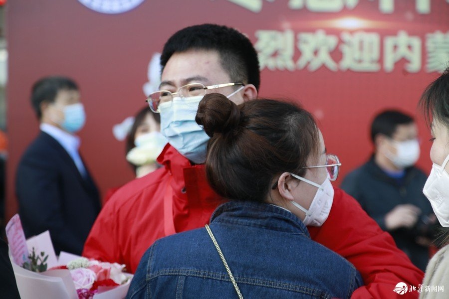 “終于把你們盼回來啦!”家人、同事們熱情擁抱,喜極而泣,歡迎“白衣戰(zhàn)士”平安歸來。