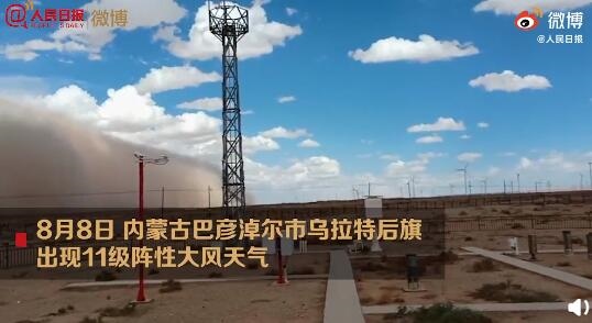 8月8日16時12分至16時23分,內(nèi)蒙古自治區(qū)巴彥淖爾市烏拉特后旗獲各琦蘇木海力素國家基準氣候站出現(xiàn)11級陣性大風天氣,最大瞬時風速28.5m/s,達到11級,海力素最小能見度192米,出現(xiàn)強沙塵暴天氣。(張棖 王衛(wèi)東)