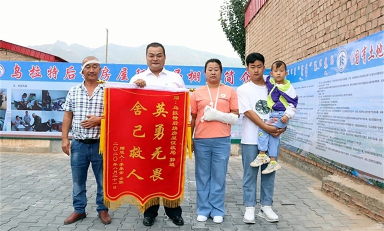 “太謝謝你了,你是我們一家四口的救命恩人,我們一輩子都會感激你?!毖壑酗柡瑹釡I的李永全緊緊握著郭進的手說。8月21日一大早,李永全一家就趕到了郭進的工作單位后旗房屋征收局,將一面寫有“英勇無畏舍己救人”的錦旗,送到了恩人郭進的手中。