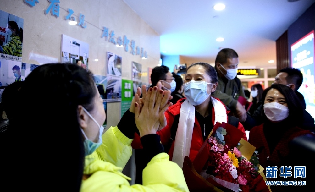 內(nèi)蒙古農(nóng)信女籃主教練鄭薇到達呼和浩特后,與前來迎接的球迷擊掌。新華網(wǎng)楊騰格爾攝