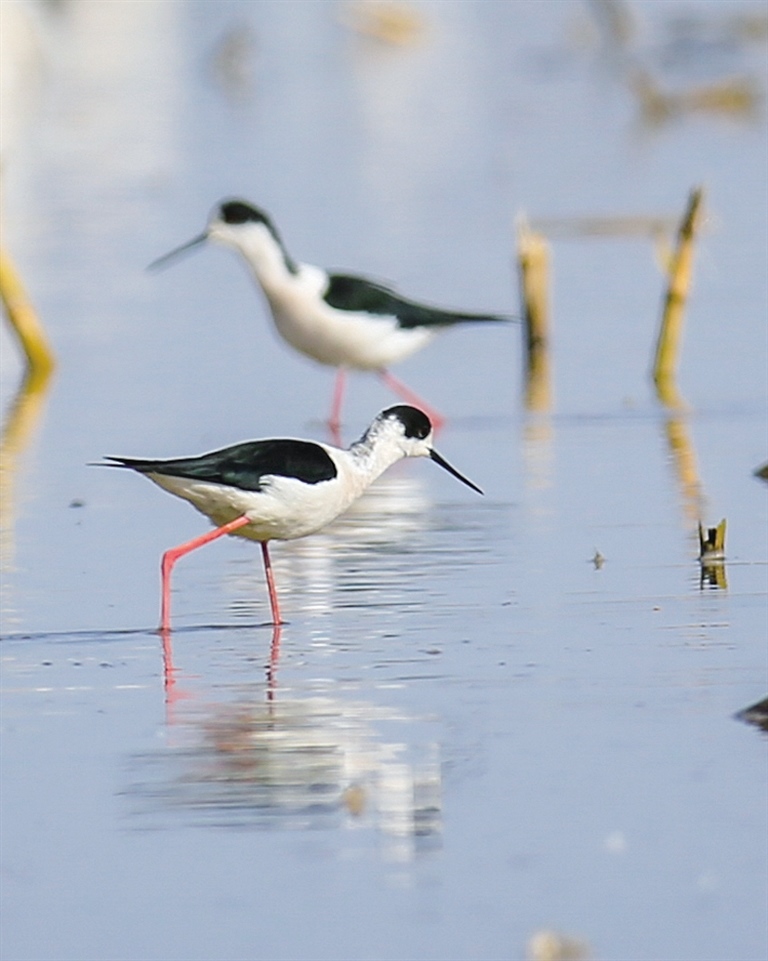 黑翅長腳鷸也愛上了這片水域