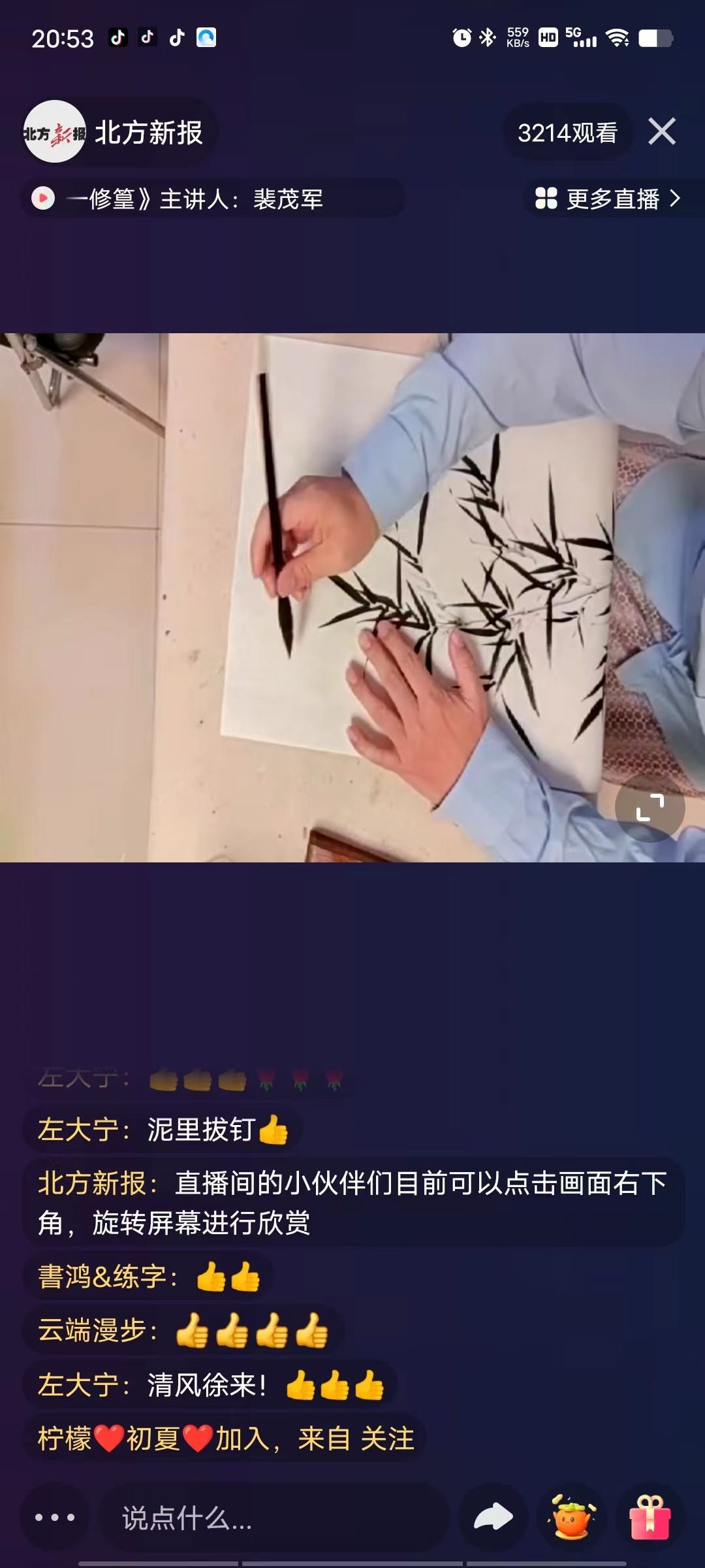 “我們這節(jié)課學(xué)習(xí)的是《明代花鳥畫一一修篁》……”10月13日晚,呼和浩特市書畫院花鳥畫講師裴茂軍線上課程開(kāi)講,給廣大美術(shù)愛(ài)好者帶來(lái)一節(jié)有趣且實(shí)用的課程,備受網(wǎng)友喜歡。