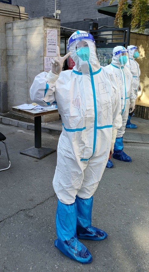 當她所居住的樓棟隔壁單元出現陽性病例后,前期一同工作的志愿者無法繼續(xù)上崗,田宇毅然承擔起整棟樓的工作量。
