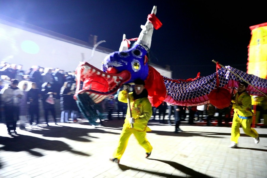 2月6日(農(nóng)歷正月十六)晚,黃河岸邊的古村落——呼和浩特市托克托縣雙河鎮(zhèn)河口村,一派熱鬧景象,當(dāng)晚的社火舞龍表演,吸引了周邊眾多居民前來圍觀。