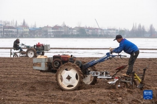 初春時節(jié),湖北省各地農民搶抓農時,翻整田地,播種施肥,呈現(xiàn)一派繁忙景象。