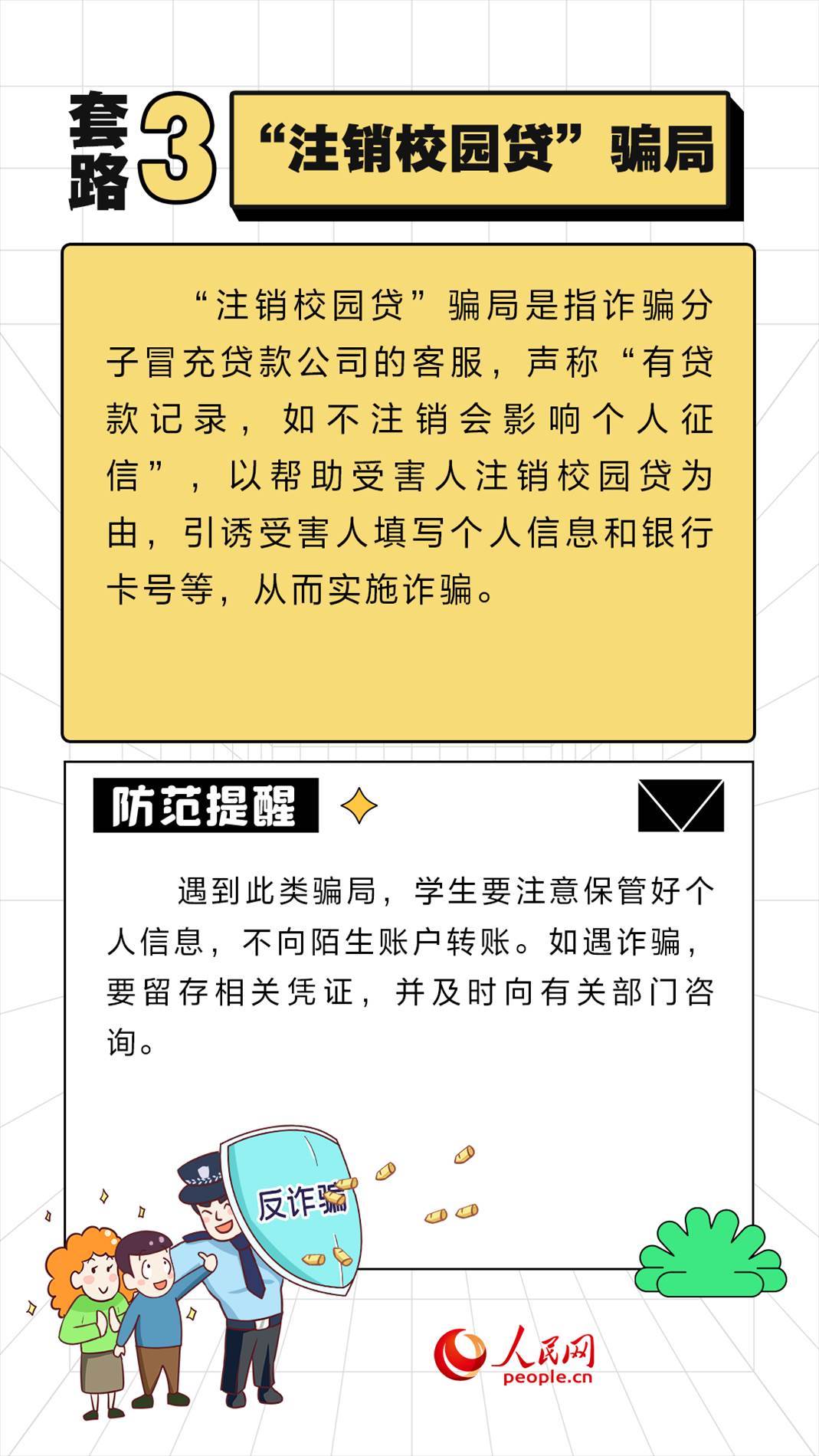 眼下正值開學(xué)季,學(xué)生們又開始了新學(xué)期的忙碌,殊不知詐騙分子也蠢蠢欲動,針對不同年齡段的學(xué)生“因人施騙”,令人防不勝防。人民網(wǎng)“求真”欄目整理了開學(xué)季六種常見的詐騙套路,提醒家長和學(xué)生注意防范。