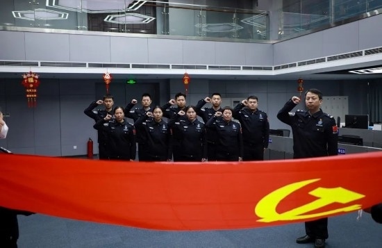 圖為陳靜波帶領“陳靜波云端前哨突擊隊”隊員開展重溫入黨誓詞活動。