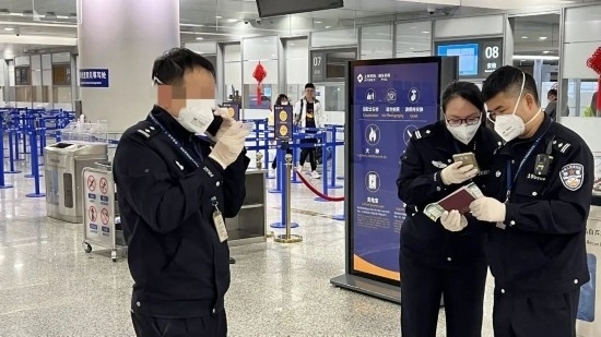 2022年10月的一個深夜,連續(xù)在浦東國際機場入境高風險區(qū)域執(zhí)勤近5個小時的谷有琪正準備離開執(zhí)勤區(qū)時,卻與迎面走來還未進行邊防檢查的遣返旅客班某撞個正著。班某游離、惶恐的眼神一下子讓疲憊的谷有琪打起精神。“當時,護目鏡里起了霧,但我能明顯感覺到他內(nèi)心有鬼!”谷有琪回憶。
