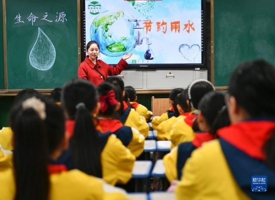 3月22日,在四川省廣安市前鋒區(qū)前鋒小學(xué),老師在講解節(jié)水護(hù)水知識(shí)。