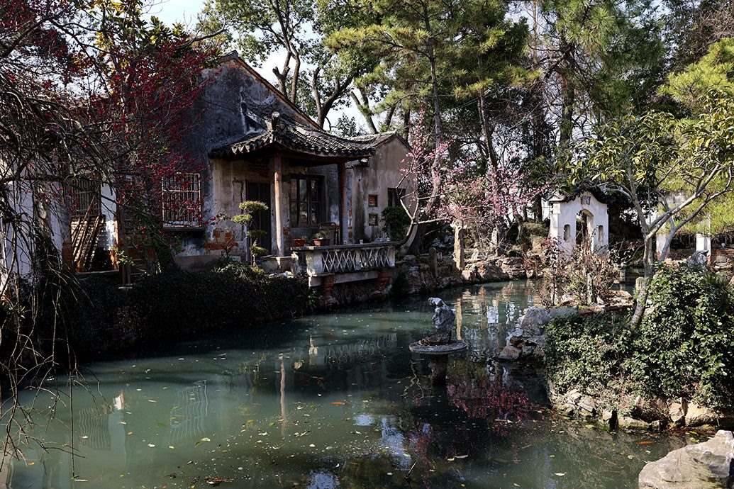 初見影園,第一眼并不算驚艷。斑駁的紅磚外墻、90年代常見的用以防盜的玻璃碎片扎進(jìn)墻頭邊沿,似乎就是鄉(xiāng)村里最普通的宅院,很難和蘇州園林扯上關(guān)系。不過,一推開門,影園就開始不動聲色地“顯山露水”。