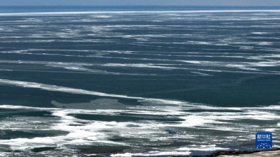 這是4月15日拍攝的青海湖一角(無人機照片)。