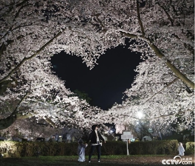 當(dāng)?shù)貢r(shí)間4月15日,日本青森縣弘前市弘前公園的櫻花進(jìn)入盛開(kāi)季。其中,有兩株盛開(kāi)的櫻花樹(shù)枝相互交織,在空中形成了一個(gè)愛(ài)心形狀,成為熱門觀光景點(diǎn)。