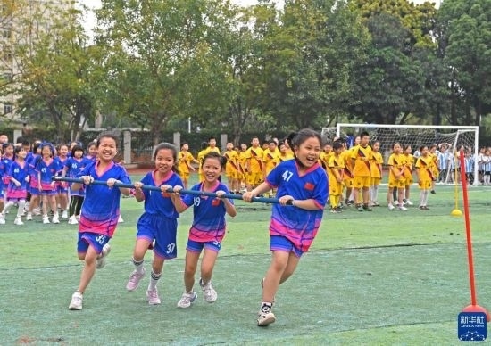 4月17日,孩子們在廣西南寧市濱湖路小學(xué)進行民族體育比賽。