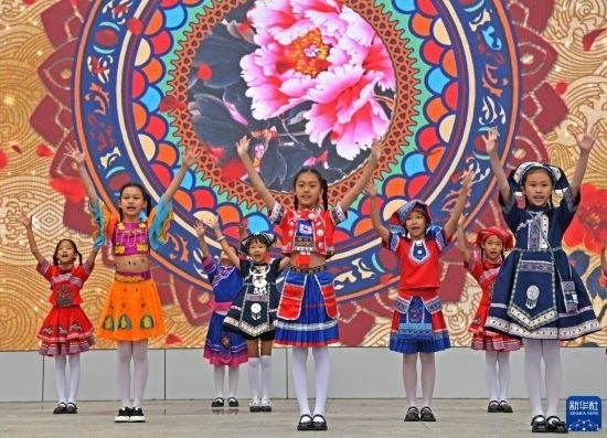 4月17日,孩子們在廣西南寧市濱湖路小學(xué)表演民族舞蹈。