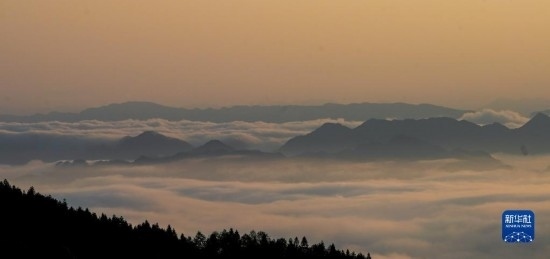 當(dāng)日,位于重慶市南川區(qū)的世界自然遺產(chǎn)地金佛山雨后放晴,山間升騰起的水汽匯聚成云海在山巒之間流淌,美不勝收。