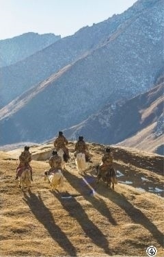 圖④在昆侖山腹地,新疆生產(chǎn)建設(shè)兵團(tuán)第三師圖木舒克市葉城二牧場三連職工騎著牦牛行進(jìn)在巡邊路上。