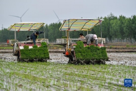 臨近立夏節(jié)氣,天津市各涉農(nóng)區(qū)組織開展大規(guī)模機(jī)械化水稻插秧,田間地頭一派繁忙景象。
