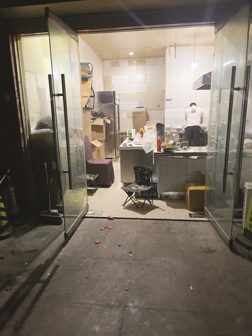 記者當(dāng)天夜里來(lái)到了王女士所說(shuō)的“寫(xiě)字樓”——位于揚(yáng)州市望月路與百祥路交會(huì)口的“廣華星都會(huì)”。記者跟著一位外賣小哥一起走進(jìn)大樓內(nèi)部,扶梯早已停用,樓內(nèi)破敗不堪,還沒(méi)有上到二樓,一股濃烈的臭味就已經(jīng)撲鼻而來(lái)。凌晨?jī)牲c(diǎn),二樓依然燈火通明。這里也分布著大大小小七八家外賣店,大部分還都在營(yíng)業(yè)中。除了環(huán)境臟亂差以外,記者找到了臭味的源頭——樓層中心的廁所,整層樓彌漫的味道讓人“上頭”。圍繞著這個(gè)廁所分布的外賣店,還在認(rèn)真地經(jīng)營(yíng)著“美食”。記者打開(kāi)外賣平臺(tái),發(fā)現(xiàn)廁所正對(duì)面的“××臭豆腐”月銷訂單2000+。