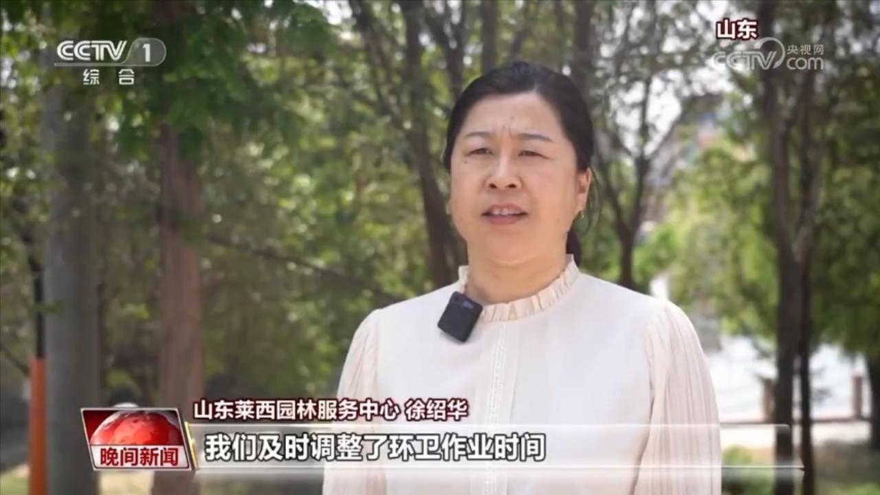 山東萊西園林服務(wù)中心 徐紹華:我們及時(shí)調(diào)整了環(huán)衛(wèi)作業(yè)時(shí)間,當(dāng)氣溫達(dá)到35℃以上時(shí),減少人工戶(hù)外作業(yè),加大機(jī)械作業(yè)頻次。同時(shí),我們聯(lián)合全市70多家愛(ài)心商戶(hù),并建了30多個(gè)環(huán)衛(wèi)休息間,方便大家休息納涼。