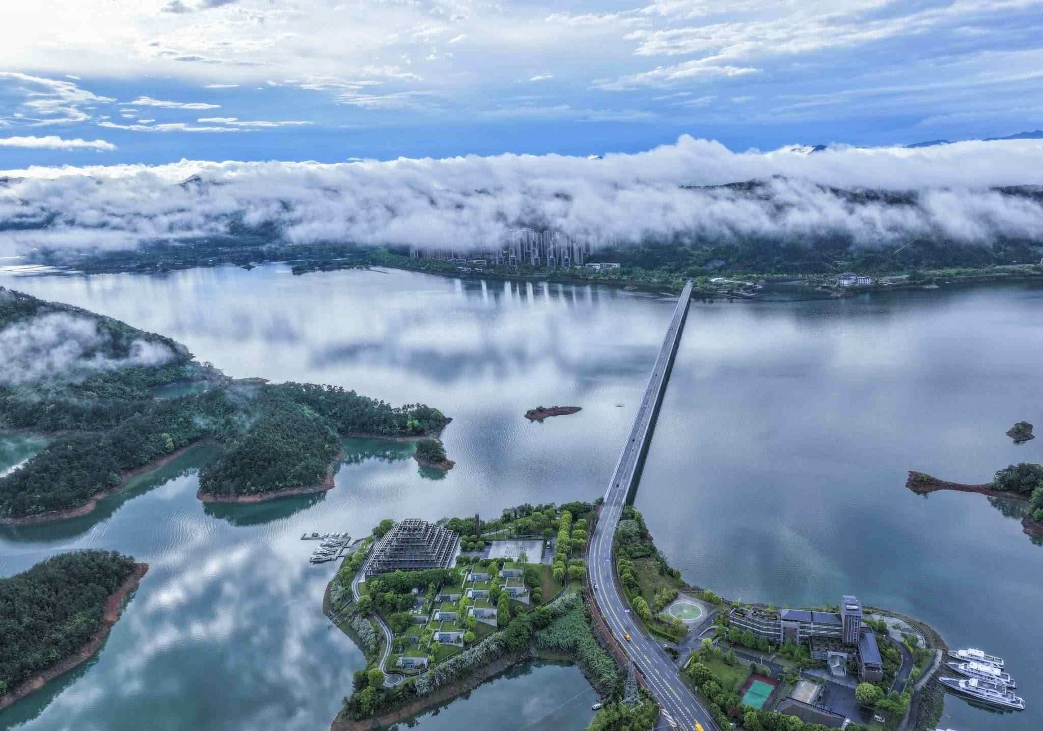 杭州:雨后千島湖晨霧繚繞