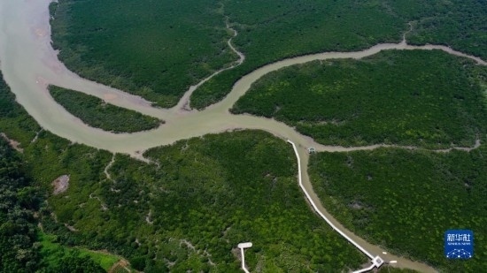 這是廣西山口紅樹林保護(hù)區(qū)一角(5月20日攝,無人機照片)。