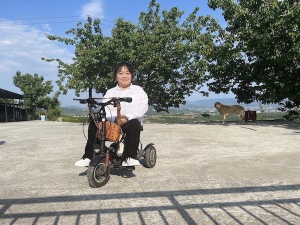雖然每天需要在輪椅上生活,但李丹并不受限于此。因身體原因無法到學校讀書,她就在家自學,每天翻字典,一個字一個字地去記;銷售有問題,12歲時她就讓父親把自己帶到菜市場,用真誠的微笑和陌生人拉近距離,打開銷路;為給桃子設計獨一無二的包裝,與漢濱區(qū)殘聯溝通后,她騎著電動輪椅坐高鐵前往西安學習攝影和畫畫;山路陡峭,輪椅不方便上下山,她就去考了C5駕照,免去父親背她走路的辛勞。面對疾病的糾纏,李丹始終保持積極的心態(tài):“我希望自己的人生是不斷突破的?!?/p>