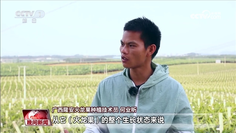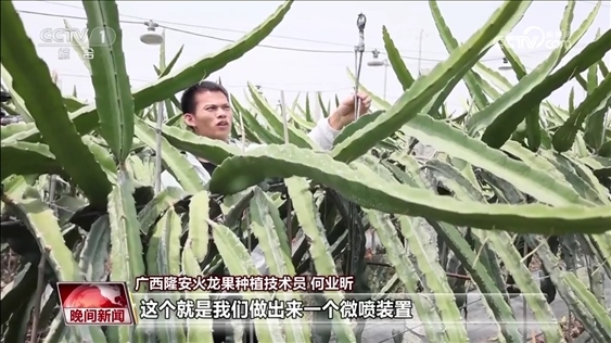 隆安火龍果種植技術(shù)員 林冠熙:不再是以前的那種面朝黃土背朝天的農(nóng)業(yè)模式,有時我們可能在電腦面前點開開關(guān),我們就可以給植物灌水灌肥。最開心的應(yīng)該是看到豐收的季節(jié),看到滿地滿果通紅的畫面,就覺得這是豐收的喜悅。