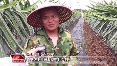 火龍果基地 農(nóng)戶 韋群良:為什么要開燈,感覺這不是很浪費電什么的,就這樣覺得,后面才知道開原來是開燈催花,要花來得更快,一年開燈的話也多個一兩批花。