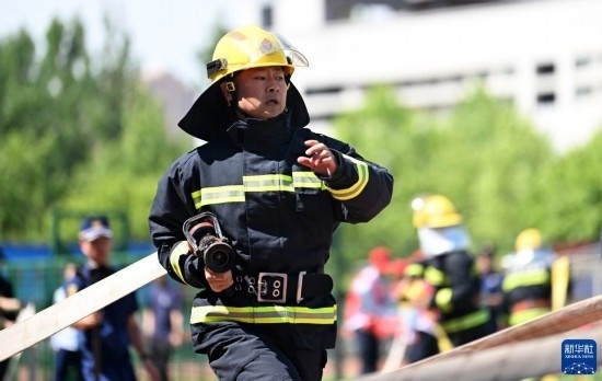 6月2日,微型消防站代表參加原地著裝加佩戴空氣呼吸器消防業(yè)務(wù)技能比武。