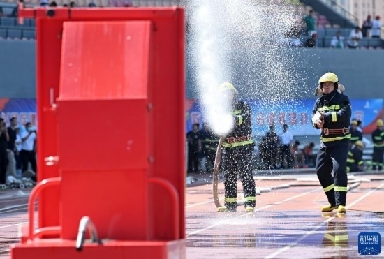 6月2日,微型消防站代表參加水槍打靶消防業(yè)務(wù)技能比武。