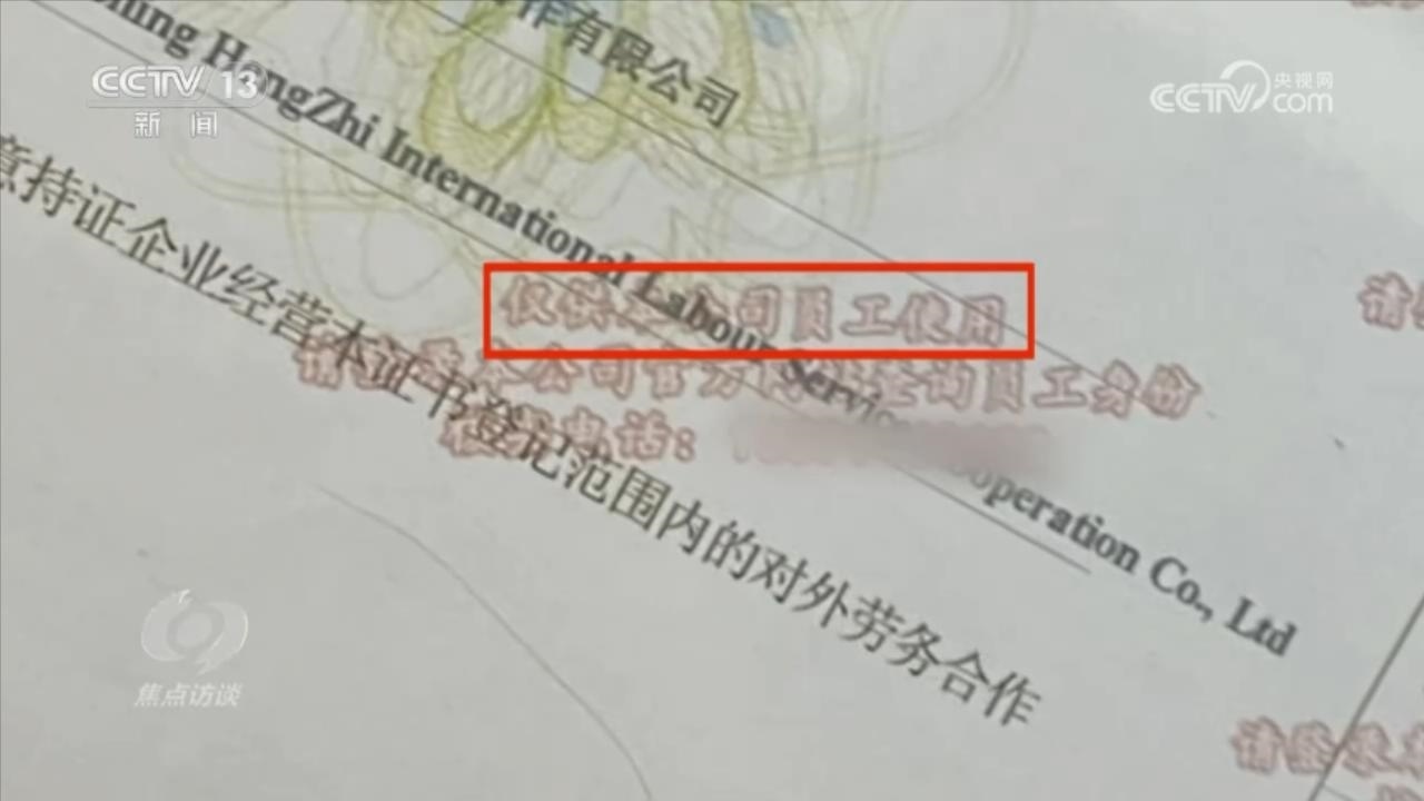 在辦公室擺放的證件是一家名為遼寧恒志國際勞務(wù)合作有限公司的對外勞務(wù)合作經(jīng)營資格證。為了防止別人冒用自己的資質(zhì),在證件上明確寫著“僅供本公司員工使用”,還印上了公司的核實(shí)電話。按照這個(gè)號碼,記者聯(lián)系了遼寧恒志國際勞務(wù)合作有限公司,公司負(fù)責(zé)人卻表示不認(rèn)識眾國國際。