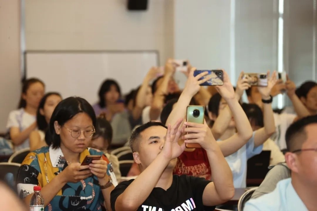 活動(dòng)中,盡管教室內(nèi)溫度很高,可沒(méi)有一名學(xué)生中途離開(kāi)。一名站在過(guò)道處聽(tīng)講的學(xué)生差點(diǎn)暈倒,工作人員把他扶到空調(diào)處休息了一會(huì),感覺(jué)好點(diǎn)后,他又繼續(xù)站在人群中聽(tīng)講。