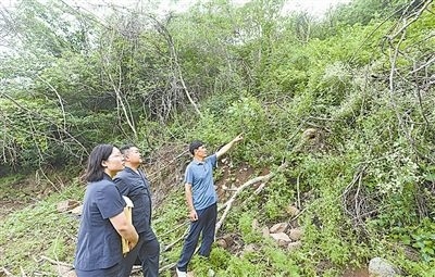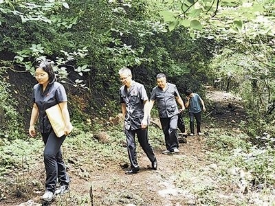 6月20日,安徽省明光市人民法院澗溪人民法庭法官頭頂炎炎烈日,穿越泥濘山道,徒步三公里,登上葛藤窩山,到一起環(huán)境污染責(zé)任糾紛案的現(xiàn)場(chǎng)查看樹(shù)木受損情況。