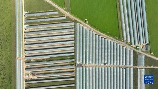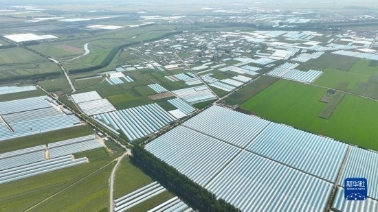 9月7日拍攝的燈塔市柳條寨鎮(zhèn)遼峰葡萄核心產(chǎn)區(qū)的葡萄種植大棚(無人機照片)。
