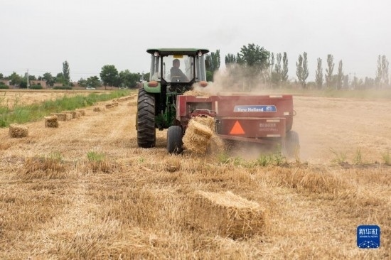 近日,寧夏小麥種植區(qū)由南到北陸續(xù)進入收獲期,當?shù)剞r(nóng)民緊抓農(nóng)時開展夏收作業(yè),確保小麥顆粒歸倉。麥收同時小麥秸稈也得到回收,用于牛羊養(yǎng)殖等領域,不僅提高了秸稈綜合利用率,還增加了農(nóng)民收入。