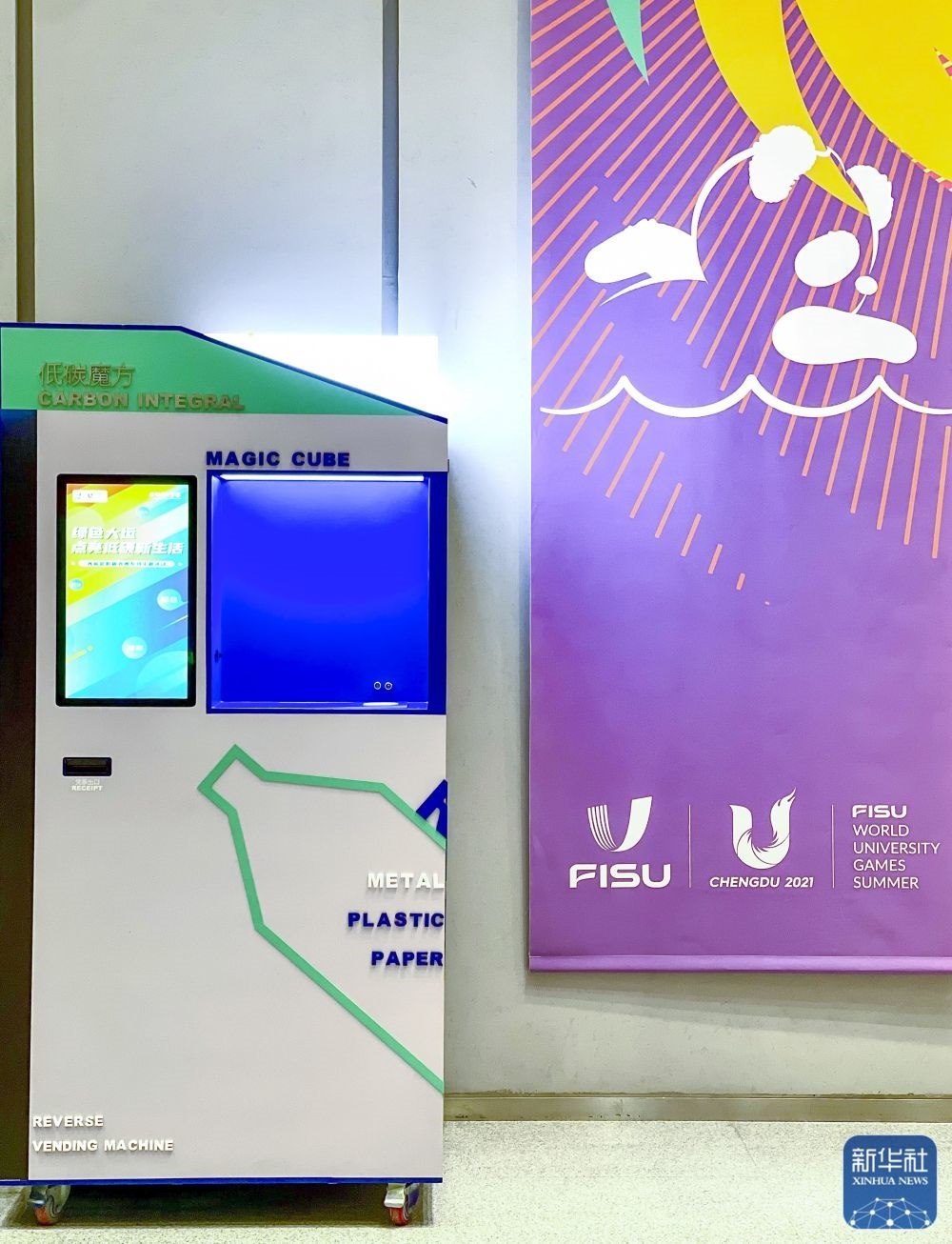 ↑這是6月28日在成都大運(yùn)會(huì)開幕倒計(jì)時(shí)30天活動(dòng)現(xiàn)場(chǎng)拍攝的“低碳魔方”。新華社記者 沈伯韓 攝