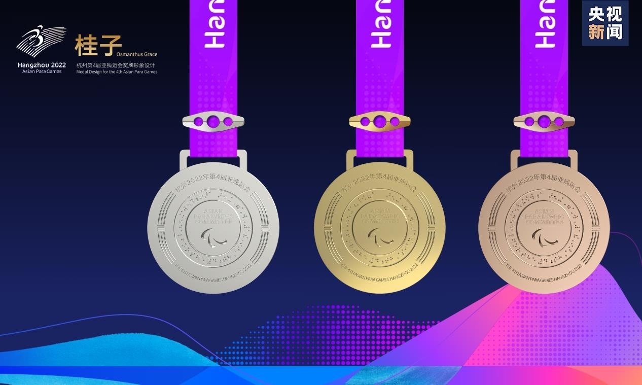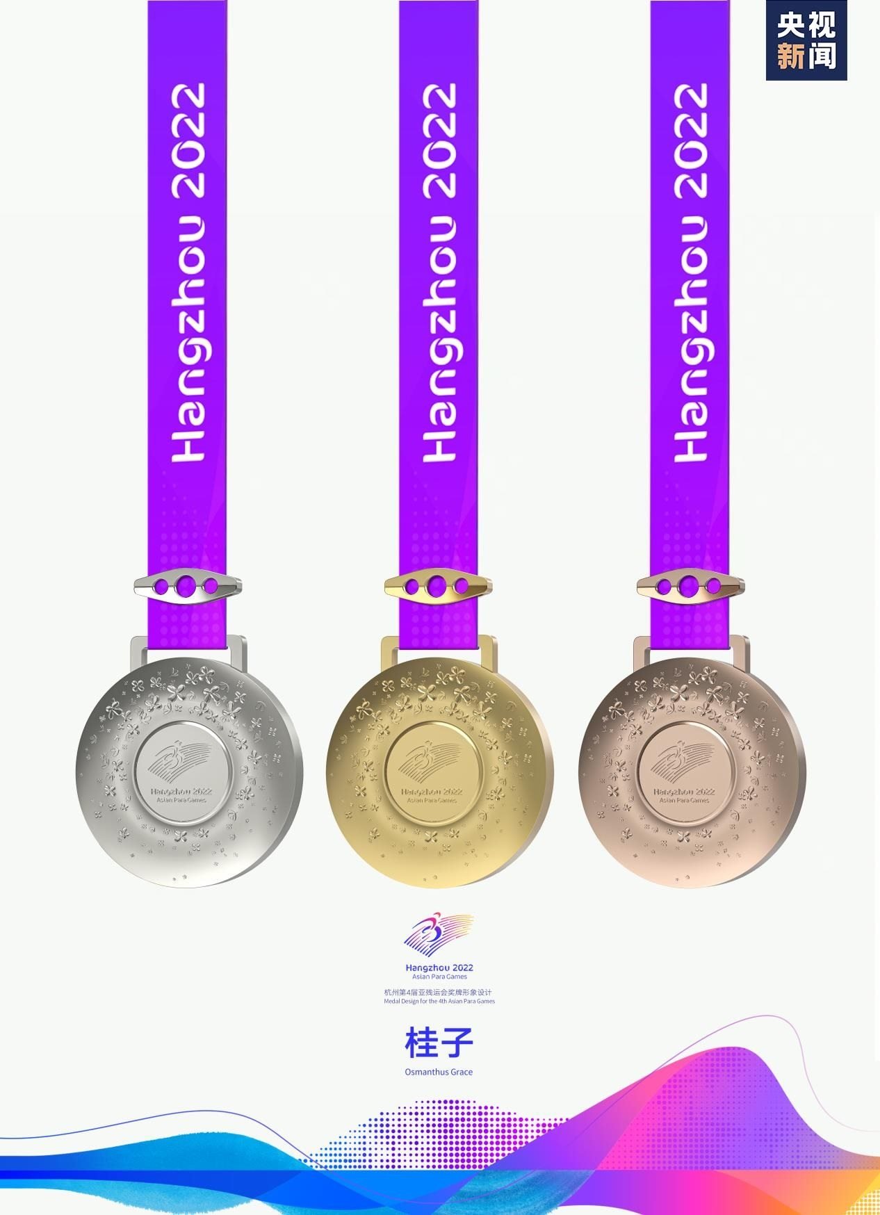 獎牌取名為“桂子”,源自描寫杭州的名句“山寺月中尋桂子”,寓含江南意境和浪漫色彩。系繼會徽“向前”,吉祥物“飛飛”,色彩系統(tǒng)“潤澤”,火炬“桂冠”后又一杭州亞殘運(yùn)會視覺形象體系的核心元素,是亞殘運(yùn)文化美學(xué)的重要表達(dá)。