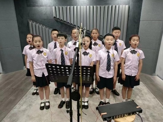 文縣東壩童聲合唱團(tuán)在央視錄音棚中錄制《大山里的孩子》。
