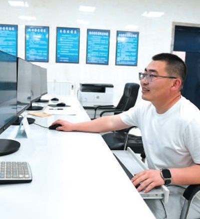 孫旭宏在密切監(jiān)測(cè)水量信息。本報(bào)記者 張 棖攝