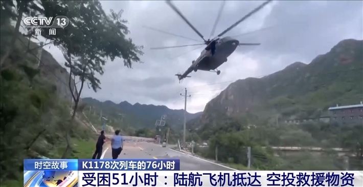 8月1日下午4:00,K1178次列車被困51小時后,某陸航旅4架滿載應(yīng)急物資的飛機(jī),克服不利氣象因素,在北京門頭溝地區(qū)執(zhí)行空投任務(wù),并為K1178次列車空投救援物資。然而,由于沿河城站位于山谷中,地形狹長,周邊環(huán)境復(fù)雜,再加上氣象條件不好,空投一開始并不順利。