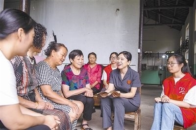 圖③:法官與青年志愿者走進林區(qū)村民家中普及法律知識。