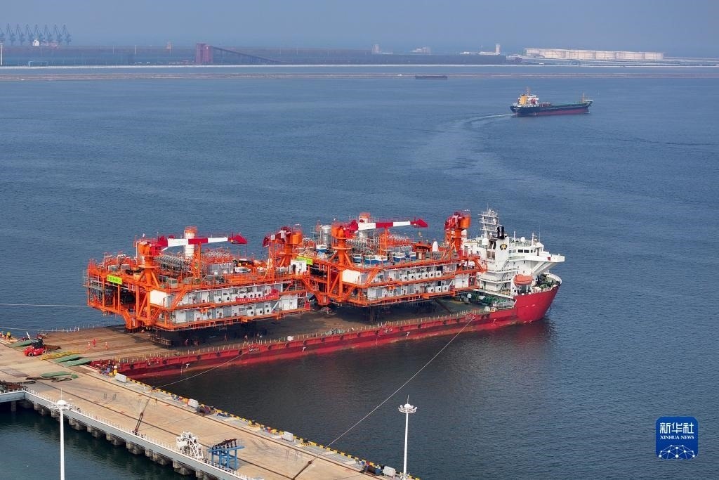 這是8月9日在天津濱海新區(qū)拍攝的渤中19-6凝析氣田I期開發(fā)項目組塊裝船作業(yè)現(xiàn)場(無人機照片)。組塊裝船后將赴渤海西部海域,進入海上安裝和聯(lián)調(diào)階段。