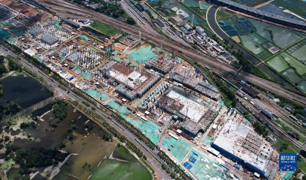 ??谛潞8酆湍细邸岸€口岸”(貨運)集中查驗場所建設(shè)項目(7月21日攝,無人機照片)。