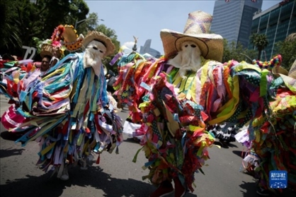 8月9日,在墨西哥首都墨西哥城,演員身著傳統(tǒng)服飾參加世界土著人民國際日慶祝活動(dòng)。1994年聯(lián)合國大會通過決議,將每年8月9日定為世界土著人民國際日。