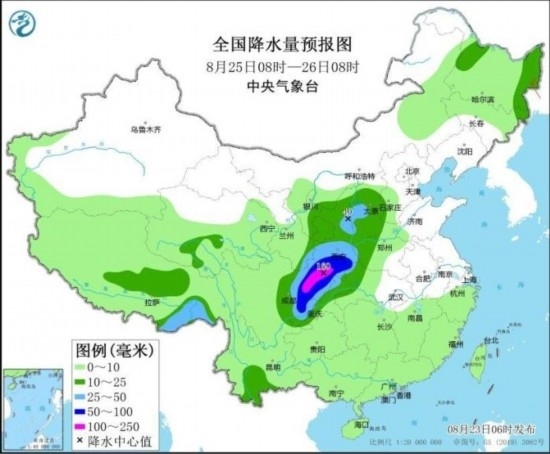 全國降水量預(yù)報(bào)圖(8月25日08時-26日08時)