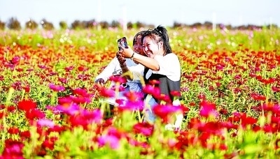 遼寧省遼河文化旅游景區(qū),花海醉游人。新華社發(fā)